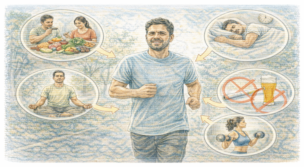 இரவு நேரங்களில் 7–8 மணி நேரம் ஆழ்ந்த தூக்கம் அவசியம். தாமதமாக உறங்குவது மற்றும் குறைவான தூக்கம் பல நோய்களுக்கு வழிவகுக்கும்.