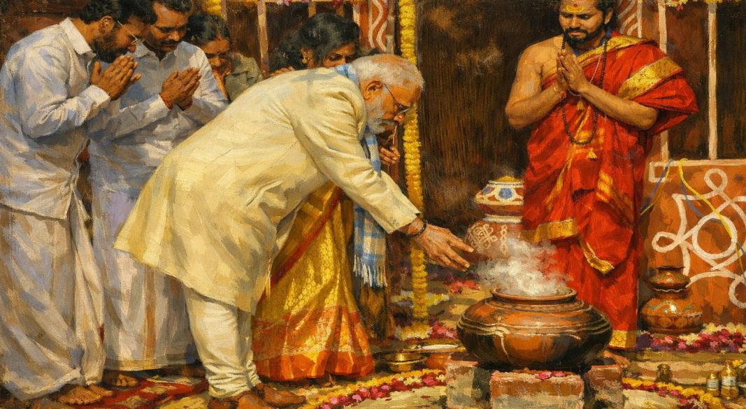 டெல்லியில் மத்திய அமைச்சர் எல். முருகன் இல்லத்தில் நடைபெற்ற பொங்கல் விழாவில் பிரதமர் மோடி பங்கேற்று, பாரம்பரிய முறையில் பொங்கல் வைத்து வழிபாடு மேற்கொண்டார். தொடர்ந்து, அங்கிருந்த பசு மற்றும் கன்றுகளுக்கு உணவளித்தார்.