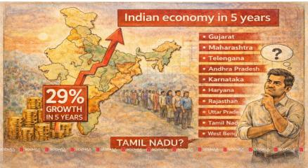 கடந்த ஐந்து ஆண்டுகளில் இந்திய பொருளாதாரம் கணிசமான வளர்ச்சியை பதிவு செய்துள்ளதாக ரிசர்வ் வங்கியின் (RBI) சமீபத்திய தரவுகள் தெரிவிக்கின்றன. 2020–21 நிதியாண்டிலிருந்து 2024–25 நிதியாண்டு வரை இந்தியாவின் மொத்த உள்நாட்டு உற்பத்தி (GDP) 29 சதவீதம் உயர்ந்துள்ளது. இந்த வளர்ச்சிக்கு பல மாநிலங்களில் ஏற்பட்ட வேகமான பொருளாதார முன்னேற்றமே முக்கிய காரணமாகக் கூறப்படுகிறது. ரிசர்வ் வங்கியின் மொத்த மாநில உள்நாட்டு உற்பத்தி (GSDP) தொடர்பான புள்ளிவிவரங்களின்படி, இந்த காலகட்டத்தில் நாட்டின் வேகமாக வளர்ந்து வரும் முதல் 10 மாநிலங்கள், தேசிய சராசரி வளர்ச்சி விகிதத்தை விட அதிகமாக முன்னேற்றம் கண்டுள்ளன. சில மாநிலங்கள் 45 சதவீதம் வரை வளர்ச்சியை எட்டியுள்ளன என்பது குறிப்பிடத்தக்கது. அதே காலகட்டத்தில், இந்தியாவின் மொத்த உள்நாட்டு உற்பத்தி 2020–21ஆம் ஆண்டில் ரூ.145.35 லட்சம் கோடியாக இருந்த நிலையில், 2024–25ஆம் ஆண்டில் ரூ.187.97 லட்சம் கோடியாக உயர்ந்து, ஐந்து ஆண்டுகளில் 29 சதவீத வளர்ச்சியை பதிவு செய்துள்ளது. இந்த பட்டியலில் அஸ்ஸாம் 45 சதவீத வளர்ச்சியுடன் முதலிடத்தை பிடித்துள்ளது. அந்த மாநிலத்தின் GSDP ரூ.2.4 லட்சம் கோடியிலிருந்து ரூ.3.5 லட்சம் கோடியாக உயர்ந்துள்ளது. விவசாயம், எண்ணெய் மற்றும் எரிவாயு வளங்கள், மேலும் வடகிழக்குப் பகுதிகளில் மேற்கொள்ளப்பட்ட உள்கட்டமைப்பு முதலீடுகள் அஸ்ஸாமின் வளர்ச்சிக்கு முக்கிய காரணமாக அமைந்துள்ளன. தமிழ்நாடு, 39 சதவீத வளர்ச்சியுடன் நாட்டின் வேகமாக வளர்ந்து வரும் மாநிலங்களில் இரண்டாவது இடத்தை பிடித்துள்ளது. மாநிலத்தின் மொத்த மாநில உள்நாட்டு உற்பத்தி ரூ.12.4 லட்சம் கோடியிலிருந்து ரூ.17.3 லட்சம் கோடியாக உயர்ந்துள்ளது. ஆட்டோமொபைல் தொழில், மின்னணு உற்பத்தி, ஜவுளி துறை மற்றும் சேவைத் துறை ஆகியவை தமிழ்நாட்டின் பொருளாதார வளர்ச்சிக்கு முக்கிய ஆதாரமாக விளங்குகின்றன. இதனைத் தொடர்ந்து கர்நாடகா 36 சதவீத வளர்ச்சியை பதிவு செய்துள்ளது. அதன் GSDP ரூ.11.5 லட்சம் கோடியிலிருந்து ரூ.15.7 லட்சம் கோடியாக உயர்ந்துள்ளது. தகவல் தொழில்நுட்ப சேவைகள், ஸ்டார்ட்அப் நிறுவனங்கள், உயிரி தொழில்நுட்பம் மற்றும் மேம்பட்ட உற்பத்தித் துறை ஆகியவை கர்நாடகாவின் பலமாக உள்ளன. உத்தரப் பிரதேசம் ஐந்து ஆண்டுகளில் 35 சதவீத வளர்ச்சியை கண்டுள்ளது. அதன் பொருளாதாரம் ரூ.11.7 லட்சம் கோடியிலிருந்து ரூ.15.8 லட்சம் கோடியாக விரிவடைந்துள்ளது. பெரிய உள்நாட்டு சந்தை, விவசாய அடித்தளம் மற்றும் தொழில்துறை உள்கட்டமைப்பு வளர்ச்சி இதற்குக் காரணமாகும். ராஜஸ்தான் 34 சதவீத வளர்ச்சியுடன் அடுத்த இடத்தில் உள்ளது. அந்த மாநிலத்தின் பொருளாதாரம் ரூ.6.8 லட்சம் கோடியிலிருந்து ரூ.9.1 லட்சம் கோடியாக உயர்ந்துள்ளது