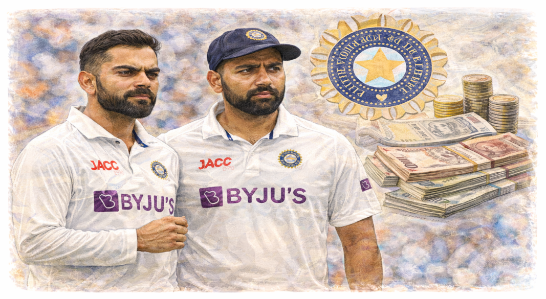 இந்திய கிரிக்கெட் அணியின் மத்திய ஒப்பந்த அமைப்பில் பிசிசிஐ முக்கிய மாற்றங்களை மேற்கொள்ள திட்டமிட்டுள்ளதாக தகவல்கள் வெளியாகியுள்ளன. தற்போது நடைமுறையில் உள்ள ‘ஏ+’ (A Plus) பிரிவை முழுமையாக நீக்கி, புதிய ஊதிய கட்டமைப்பை அமல்படுத்த பிசிசிஐ ஆலோசித்து வருவதாக கூறப்படுகிறது. இந்த மாற்றம் நடைமுறைக்கு வந்தால், இந்திய அணியின் மூத்த நட்சத்திர வீரர்களான விராட் கோலி மற்றும் ரோகித் சர்மா ஆகியோர் இனி ‘ஏ+’ பிரிவில் இடம்பெற மாட்டார்கள் என்றும், அவர்கள் ‘பி’ (B) பிரிவுக்கு தரம் குறைக்கப்பட வாய்ப்பு இருப்பதாகவும் தகவல்கள் தெரிவிக்கின்றன.