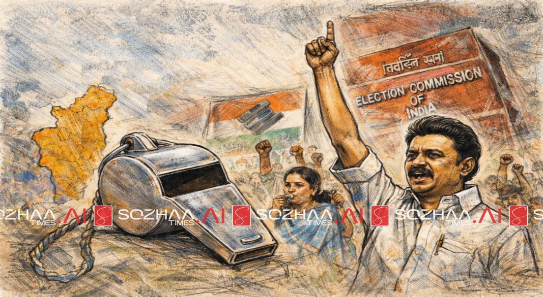 தமிழக வெற்றிக் கழகத்திற்கு ‘விசில்’ சின்னம் – தேர்தல் ஆணையம் அதிகாரப்பூர்வ ஒப்புதல்   தமிழக அரசியல் களத்தில் புதிய அத்தியாயத்தை தொடங்கியுள்ள நடிகர் விஜய்யின் தமிழக வெற்றிக் கழகம் (TVK), தனது முதல் சட்டமன்றத் தேர்தலை எதிர்கொள்ள தயாராகி வருகிறது. 2026 ஆம் ஆண்டு நடைபெற உள்ள தமிழ்நாடு சட்டமன்றத் தேர்தலை முன்னிட்டு, அக்கட்சி கோரியிருந்த ‘விசில்’ சின்னத்தை இந்திய தேர்தல் ஆணையம் அதிகாரப்பூர்வமாக ஒதுக்கியுள்ளது.   தமிழக வெற்றிக் கழகம் தற்போது பதிவு செய்யப்பட்டிருந்தாலும், இன்னும் அங்கீகாரம் பெறாத கட்சியாகும். இருப்பினும், மாநிலம் முழுவதும் உள்ள 234 தொகுதிகளிலும் ஒரே சின்னத்தில் போட்டியிடும் வகையில், தேர்தல் ஆணையம் பொதுச் சின்னம் வழங்கியுள்ளது.   தேர்தல் ஆணையத்திடம் கட்சி சார்பில் சமர்ப்பிக்கப்பட்ட 10 விருப்பச் சின்னங்களில் ‘விசில்’ முதலிடத்தில் இடம்பெற்றிருந்தது. கட்சித் தலைவர் விஜய் விரும்பிய சின்னமே ஒதுக்கப்பட்டுள்ளதால், கட்சித் தொண்டர்கள் மற்றும் ஆதரவாளர்கள் மத்தியில் பெரும் உற்சாகம் ஏற்பட்டுள்ளது.   ஒரு புதிய அரசியல் கட்சிக்கு மாநில அளவில் ஒரே சின்னம் வழங்கப்படுவது, அந்தக் கட்சியின் அடையாளத்தை பொதுமக்களிடம் விரைவாக கொண்டு செல்ல உதவும் முக்கிய அம்சமாகக் கருதப்படுகிறது. ‘விசில்’ சின்னம் எச்சரிக்கை, விழிப்புணர்வு மற்றும் மாற்றத்தைக் குறிக்கும் அடையாளமாக பார்க்கப்படுகிறது. ஊழலுக்கு எதிரான குரல் அல்லது புதிய அரசியல் தொடக்கத்தின் குறியீடாக இதனை த.வெ.க. பயன்படுத்தும் வாய்ப்பும் உள்ளது.   இதுகுறித்து கட்சியின் தகவல் தொழில்நுட்பப் பிரிவு நிர்வாகி சி.டி.ஆர். நிர்மல் குமார் கூறுகையில், “எங்கள் தலைவர் விரும்பிய விசில் சின்னமே கிடைத்துள்ளது. இது கட்சியின் அரசியல் பயணத்தில் ஒரு முக்கிய ஆரம்ப கட்டமாகும்” எனத் தெரிவித்துள்ளார்.   இதனிடையே, நடிகர் கமல்ஹாசன் தலைமையிலான மக்கள் நீதி மய்யம் கட்சிக்கும், அவர்கள் பயன்படுத்தி வந்த ‘டார்ச் லைட்’ சின்னம் பொதுச் சின்னமாக மீண்டும் ஒதுக்கப்பட்டுள்ளது. இதன் மூலம் 2026 சட்டமன்றத் தேர்தலை முன்னிட்டு, அரசியல் கட்சிகளின் பிரச்சாரமும் சின்னங்களும் இப்போதே கவனம் பெறத் தொடங்கியுள்ளன.