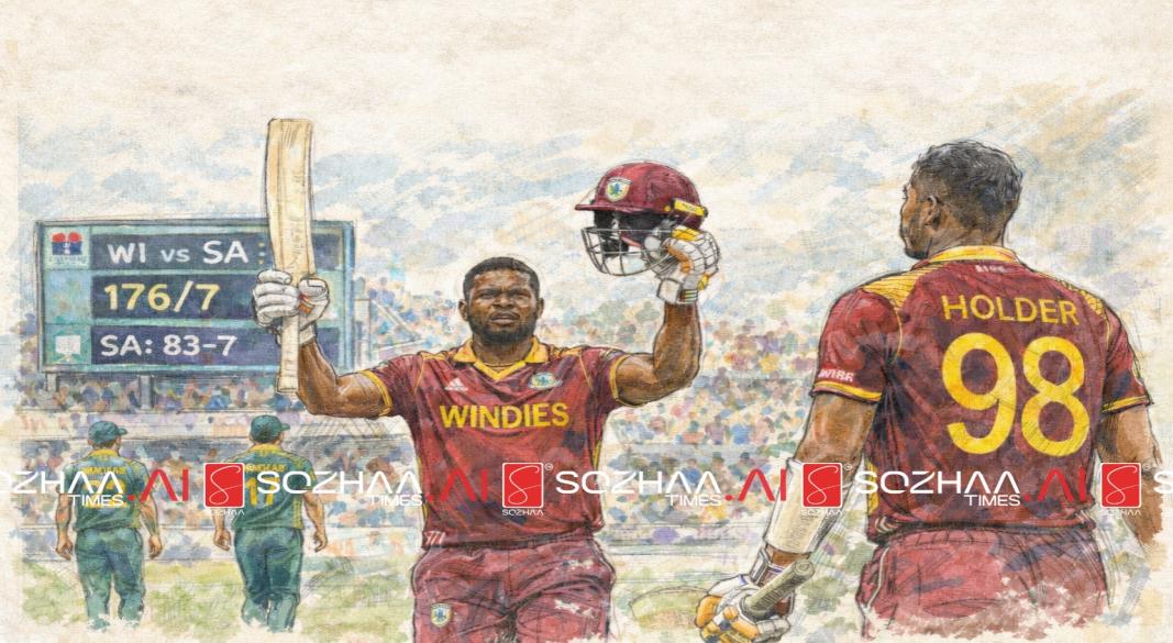 மொத்தத்தில், 83/7 என்ற சிக்கலான நிலையிலிருந்து 176 ரன்கள் வரை எடுத்துச் சென்ற ஷெபர்ட்–ஹோல்டர் கூட்டணி, இந்த போட்டியின் முக்கிய அம்சமாக அமைந்துள்ளது.
