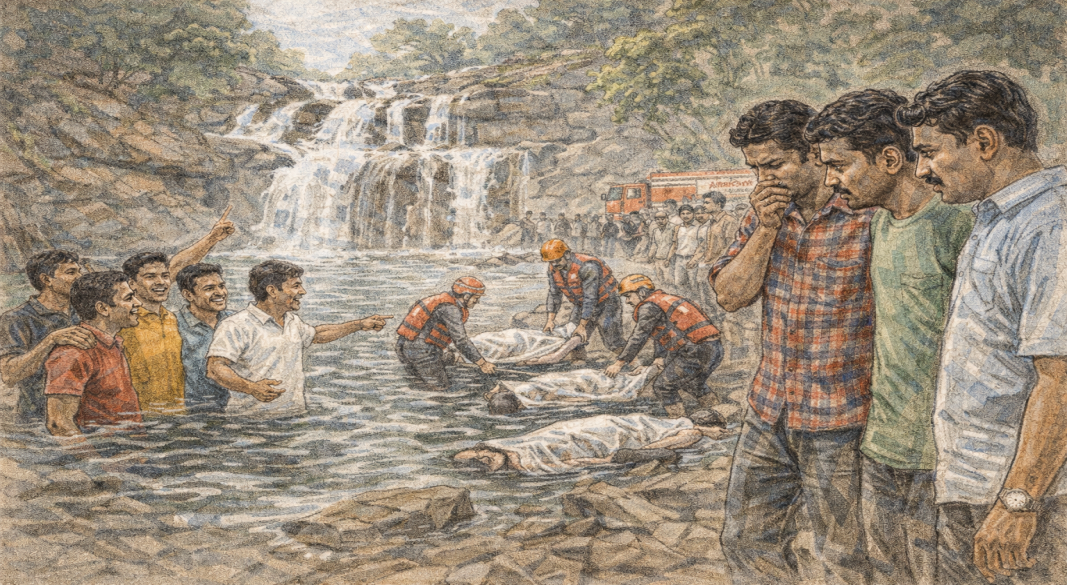 திண்டுக்கல் மாவட்டம் ஒட்டன்சத்திரம் அருகே உள்ள தளையூத்து அருவியில் குளிக்க சென்ற இளைஞர்கள் குழுவில், 4 பேர் நீரில் மூழ்கி உயிரிழந்த சம்பவம் பெரும் சோகத்தை ஏற்படுத்தியுள்ளது.