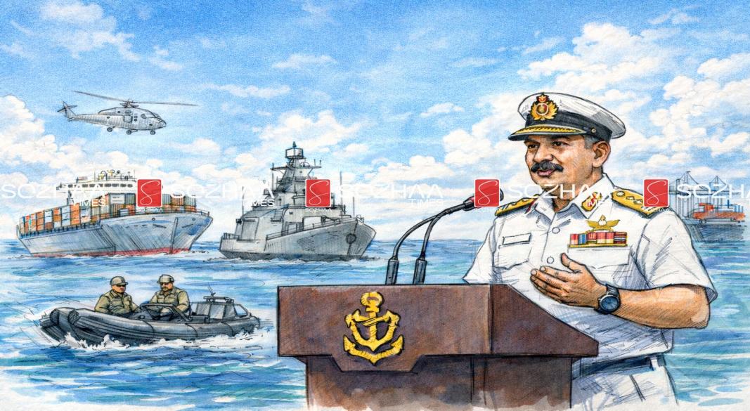 இந்தியா மூன்று பக்கங்களிலும் கடல்களால் சூழப்பட்டுள்ளதால், புவியியல் ரீதியாக மிகுந்த சாதகமான நிலையை பெற்றுள்ளதாகக் கூறிய கடற்படை தளபதி, இந்த வாய்ப்பை முழுமையாகப் பயன்படுத்த வேண்டிய அவசியம் இருப்பதாக வலியுறுத்தினார். கடல் எல்லைகள் பாதுகாப்பாக இருப்பதே நாட்டின் வளர்ச்சிக்கான அடிப்படை எனவும் அவர் கூறினார்.
